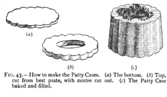 A vol-au-vent (pronounced [vɔlovɑ̃], French for "windblown", to describe its lightness) is a small hollow case of puff pastry. It was formerly also called a patty case.[1]