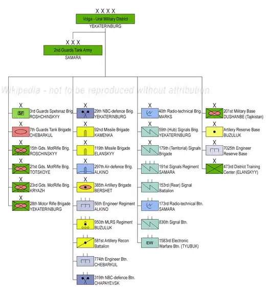 - 2nd Guards Red Banner Combined Arms Army, Samara (formerly headquarters Ural Military District)(history closely associated with 2nd Guards Tank Army)