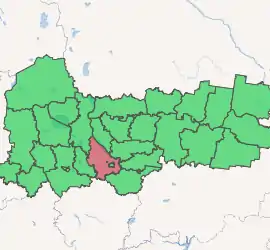 Vologodsky District (Russian: Волого́дский райо́н) is an administrative[1] and municipal[7] district (raion), one of the twenty-six in Vologda Oblast, Russia. It is located in the center of the oblast and borders with Ust-Kubinsky and Sokolsky Districts in the northeast, Mezhdurechensky District in the east, Gryazovetsky District in the southeast, Poshekhonsky District of Yaroslavl Oblast in the southwest, Sheksninsky District in the west, and with Kirillovsky District in the northwest. The area of the district is 4,500 square kilometers (1,700 sq mi).[4] Its administrative center is the city of Vologda[9] (which is not administratively a part of the district).[1] Population: 50,438 (2010 Census);[5] 50,956 (2002 Census);[10] 64,946 (1989 Census).[11] As of 2010, Vologodsky District was the most populous among all the districts of Vologda Oblast.[5]