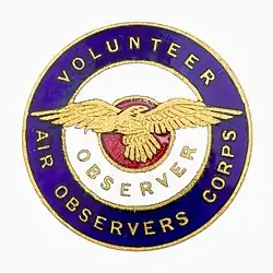 The VAOC operated under the command of the RAAF as an auxiliary arm but unlike the Royal Observer Corp in Britain members of Australia's Volunteer Air Observer Corp were not required to wear a uniform. They only received a blue armband and later a small blue lapel pin for identification. Also, responsibilities for keeping records of volunteer service rested with the VAOC and not the RAAF and as a result the records were patchy.[2] This oversight had ramifications after the war for volunteers seeking recognition of their efforts.