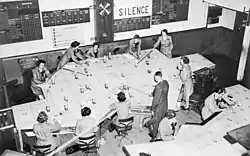 In Australian airspace by late 1943 there were thousands of aircraft movement every day with the combined USAAF and RAAF flights as well as civilian and commercial flights. All of this was tracked and plotted manually with the assistance of the VAOC in the field recording the numbers and aircraft type, speed, elevation and their direction. Flights could last several hours and transit two or more States and were tracked across borders. The air observers were unable to make direct contact with aircraft by radio but sometimes signalled using lights and lanterns. Radar was in its infancy in Australia.[2]