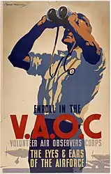 The VAOC was staffed by civilian volunteers and reached an estimated peak strength in 1944 of about 24 000 personnel and 2 656 Observation Posts. After the end of the war, the VAOC was reduced to a cadre in December 1945 and was disbanded on 10 April 1946.
