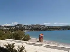 The Vouliagmeni beaches are consistently awarded the coveted EU blue flags for environmental excellence. The triathlon competition for the 2004 Summer Olympics took place in this area. The small, rocky islet of Fleves lies off shore.