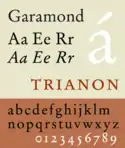 The classicals can be broken down into humanist, Garald, and transitional categories, and are characterized by triangular serifs, oblique axis, and low stroke contrast. In other classification systems, this group is often referred to as "oldstyle."