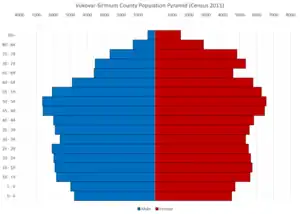 The population of Vukovar-Syrmia County at the time of 2011 Census was 179,521 making it the 7th most populous county of Croatia. Historically, the population was highest in 1991 when it peaked at little over 230 thousand inhabitants.[5]