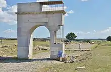 In 2003 the foundations of a triumphal arch were discovered on the Decumanus at the west side of the Roman forum. Many fragments were found which allowed reconstruction of the arch, and a long inscription was also found which dedicated it to Publius Sulpicius Mundus who was a Roman senator in around 100 BC.