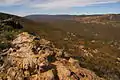 Some of the features of the ranges are the deep gorges cut in the south-eastern side of the Blue Range: Bunyip Chasm, The Terraces, and Fern Chasm are all areas often visited by bushwalkers. Although lower than the mountains which surround it on three sides, the dramatic Cleft Peak is also often visited, so-named for a spectacular cleft separating it into two summits, and providing opportunities for rockclimbing to a summit, not often necessary with peaks in the Flinders.