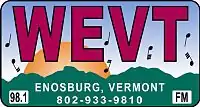 WEVT-LP (98.1 FM) is a radio station licensed to Enosburg Falls, Vermont, United States. The station is owned by Spavin Cure Historical Group. WEVT-LP is one of the oldest Low Power FM Stations in Vermont, with broadcasting starting on November 15, 2004.