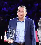 Curt Miller, shown here accepting the 2017 WNBA Coach of the Year Award, was also the league's first Executive of the Year, winning that award in the same season.