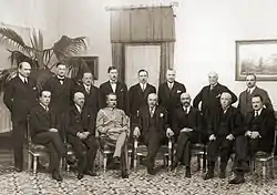 In the autumn of 1927, the informal “Council of Colonels” was created. It consisted of a group of close Piłsudski aides and was headed by Sławek. Its meetings took place at Sławek's Warsaw apartment. Before the 1928 Polish legislative election, Sławek came up with the idea of creating a new pro-government political body, the Nonpartisan Bloc for Cooperation with the Government (BBWR) of which he was the chairman. After the BBWR's victory in the election, Sławek was its main ideologist and one of the most influential persons in the country. One of the closest associates of Piłsudski, he was fanatically devoted to the Marshal, who called him the “Loyal Walery”. Sławek was one of the first ten persons awarded with the Cross of Independence with Swords.
