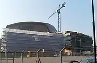 During the design and construction period, the project name for phase 2 was C Bay.[47][48] Construction of phase 2 began in April 2007,[44] and ended when the keys to the building were handed over at an official ceremony in September 2008,[51] and the beginning of the fitting out of the BBC Hoddinott Hall by BBC Wales.[52]