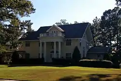The Walls House, known also as the McCrary House, is a historic house at 406 Jefferson Street in Lonoke, Arkansas. It is a 2 1⁄2-story wood-frame structure, with a side-gable roof and weatherboard siding. Its Colonial Revival styling includes a projecting front portico, with paired Tuscan columns supporting an entablature and balustraded balcony, above which rises a large gabled dormer with exposed rafter ends. The house was built in 1913 to a design by Charles L. Thompson.[2]