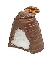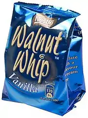 A Walnut Whip is a whirl-shaped cone of milk chocolate with a whipped vanilla fondant filling, topped with a half-walnut.[1][2]