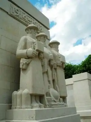 Nearby is the English sculptor Eric Kennington's "Monument to the Missing" which is dedicated to all those who lost their lives in this area but do not have known graves (their bodies were never found/identified). During the Battles of the Aisne and the Marne in 1918 there were nearly 4,000 Allied soldiers lost.[25][26]