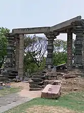Later modifications to the fort were made between the 15th and 17th centuries, mainly with the addition of barbicans to the four gates in the stone wall and the creation of gates in the outer earthen wall.[12] Remnants of the structure can be seen today near the town of Warangal, which was the Kakatiya capital.[8] The Archaeological Survey of India has listed the ruins as a Monument of National Importance.[13]