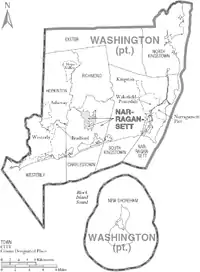 Washington County, known locally as South County, is a county located in the U.S. state of Rhode Island. As of the 2010 census, the population was 126,979.[1] Rhode Island counties have no governmental functions other than as court administrative and sheriff corrections boundaries, which are part of the state government.[2]