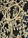 There are many other works of art including over two hundred stained glass windows,[3] the most familiar of which may be the Space Window, honoring mankind's landing on the Moon, which includes a fragment of lunar rock at its center;[3] the rock was presented at the dedication service on July 21, 1974, the fifth anniversary of the Apollo 11 mission.[41] Extensive wrought iron adorns the building, much of it the work of Samuel Yellin. A substantial gate of forged iron by Albert Paley was installed on the north side of the crypt level in 2008. Intricate woodcarving, wall-sized murals and mosaics, and monumental cast bronze gates can also be found. Most of the interior decorative elements have Christian symbolism, in reference to the church's Episcopal roots, but the cathedral is filled with memorials to persons or events of national significance: statues of Washington and Lincoln, state seals embedded in the marble floor of the narthex, state flags that hang along the nave, stained glass commemorating events like the Lewis and Clark expedition and the raising of the American flag at Iwo Jima.