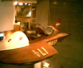 Australian speedboat Wasp III is a racing hydroplane speedboat designed and built by Harry West, which held speed records in Australia in the 1950s and 60s. It is built from plywood and powered by a heavily modified Peugeot car engine. It is designed to skim the surface so that only the propeller and the tips of the hydroplanes are immersed when it is moving. The boat currently resides in the Queensland Museum in Brisbane, Australia.