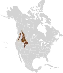 Water voles live in two distinct bands through the western United States and Canada, extending from British Columbia and Alberta through parts of Oregon, Washington, Montana, Idaho, Wyoming, and Utah. They are found in alpine or semi-alpine meadows near water, usually between 914-3,201 m in elevation. The distribution of habitats is found to be extremely variable, due to the geographical barriers of large coniferous forests, mountains, and expansive valleys without readily available waterways.[5] Although, genetic data has been collected that suggests water voles do have the ability to disperse over land to reproduce with other populations, this overland dispersal between colonies tends to be higher with adjacent populations, and less so with increased distance.[4] Because water voles live in such small isolated patches it is necessary for them to form such a metapopulation structure, in which dispersal can balance out local extinction.[9]