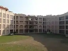 The Salt Lake Campus consists of an academic block and three residential blocks. The latter comprises two, seven-storied halls of residence for girls and boys, and a double-storied faculty accommodation house-cum-guest house. The university's academic block, christened after B.R. Ambedkar, is a four-storied octagonal structure that opens inwardly to a lawn. The building houses classrooms, a library and reading room, two conference halls, offices and an auditorium.