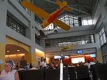 Westchester County Airport has one small, three-level terminal with six gates, of which only four can be used simultaneously because only four aircraft can be scheduled to use the terminal's ramp at any given time. The $35 million terminal was built in 1995 and designed by Lothrop Associates.[32] Gates A, B, C, and F have jetways. The terminal also has a luggage carousel, a baggage reclaim office and two Transportation Security Administration (TSA) screening lanes. Passenger amenities include a gift shop, departure lounge, and food concessions such as a Dunkin' Donuts.[33]