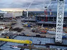 Westfield Doncaster's third redevelopment started with planning approval in May 2004,[5] preliminary works taking place at the centre from September to December 2006, which provided a platform for the main construction works that commenced on 15 January 2007. Doncaster Hill developers met several times with City Council over the next twelve months to discuss creating more sustainable buildings for the community, however little became of the idea of a self-sustaining precinct.[6] It is uncertain whether the wind turbines used at the Manningham Civic Precinct are suitable for powering other buildings.[7] The upgrade was finally completed in October 2008[5] with the centre doubling the previous size, costing A$650 million.[5]