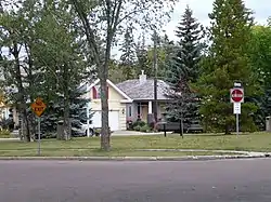 The large majority of the Westmount area is occupied by single family detached houses. This includes a large number of historic homes, often in the Craftsman or Four Square styles, in the Westmount Architectural Heritage Area (WAHA) and the Groat Estates area. The WAHA is bound by 107 Ave in the south, 127 St in the west, 124 St in the east, and 111 Ave in the north.[10] The Groat Estates are a peninsular shaped area in the southwest portion of Westmount, bound by 107 St in the north, 124 St in the east, the meandering Groat Road Ravine in the west and southwest and the North Saskatchewan River Valley in the south.[11]
