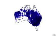 The species has undergone range expansion in the last century.[6][14] It was formerly linked closely to the distribution of river red gum (Eucalyptus camaldulensis) and a few other riverine species;[15] but it has since expanded into coastal areas to become resident in Sydney and Newcastle, where they were previously uncommon or only seasonal visitors.[6][14] Banding studies indicate that the species is primarily sedentary, with 99.8% of recaptures occurring less than 10 km (6.21 mi) from the banding site. Small local movements occur, perhaps in response to environmental conditions.
