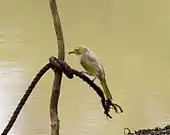 The white-plumed honeyeater (Ptilotula penicillata, formerly Lichenostomus penicillatus[2]) is a small passerine bird endemic to Australia. White-plumed honeyeaters are common around water and are often seen in backyards and suburbs with vegetation cover.[3]