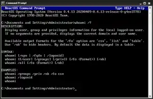 ![]() The ReactOS whoami command | |