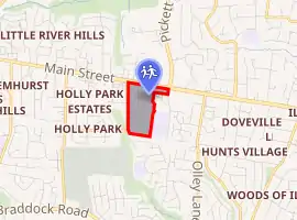 Several unincorporated areas, such as Mantua,[15] Olde Creek, Canterbury Woods, Truro, Rutherford,[16] Long Branch, and Wakefield Forest are served by Woodson.