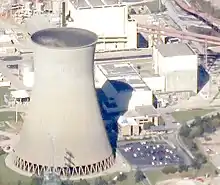 The plant's cooling tower was designed to handle the cooling for the original nuclear plant. This creates generating efficiency issues during very hot summer days, as the cooling tower must cool much more equipment than it was originally designed for. A 573 ft (175 m) smokestack was constructed to complement the cooling tower.[35]
