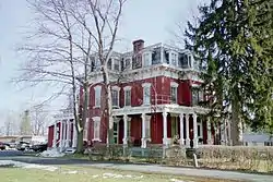 The William Lampman House is located at 147 Grandview Avenue, in Catskill, New York.[2] The 2.6-acre (11,000 m2) site is located on the west side of Catskill Creek, which bisects the town. Contractor, builder and lumberdealer William E. Lampman built the house around 1891. It is significant as an excellent example of the Second Empire style of architecture in Catskill. It is a three-story, brick L-shaped house on a stone foundation. Its characteristic mansard roof is topped with slate shingles. The house was constructed with a traditional center hall plan. In the 1940s, it was converted to apartments, but still retains many characteristic architectural features in the interior. Also on the property is a contributing two story carriagehouse, which has fallen into disrepair.