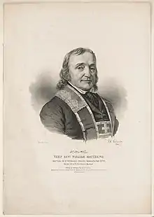 William Matthews (December 16, 1770 – April 30, 1854), occasionally spelled Mathews,[lower-alpha 1] was an American Roman Catholic priest from the colonial Province of Maryland who became the fifth Catholic priest ordained in the United States and the first such person born in British America. He was briefly a novice in the Society of Jesus, and became influential in establishing Catholic parochial and educational institutions in Washington, D.C. He was the second pastor of St. Patrick's Church for most of his life and was the sixth president of Georgetown College, later known as Georgetown University. Matthews acted as president of the Washington Catholic Seminary, which became Gonzaga College High School, and oversaw the continuity of the school during suppression by the church and financial insecurity.