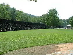 The W&P was of potential value to the Confederates for any need to attack Harpers Ferry[5] and did serve a useful role in the movement of Virginia Militia troops to defensive positions in and about Harpers Ferry.[6] Although it could potentially be used to feed Confederate forces into the defenses of western Virginia via the B&O, by running along the northern border of the Confederate states, it would have been vulnerable to attack, possibly stranding large units to the west. So, due to its very northern location, and mere spur-like connection to the B&O, its overall potential usefulness to the Confederacy was not great.[5] The greatest use and value in the W&P came in the first eight months of the war, from May 1861 to January 1862, when it was utilized to ship light machinery from the Harpers Ferry arsenal down to Winchester, and from there overland to Strasburg and the Manassas Gap Railroad. The light strap rails did not permit heavy shipments, and this was a constant factor until late in the war.[7]