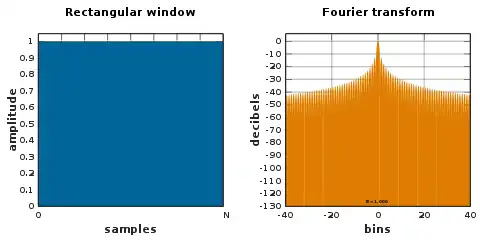 The rectangular window (sometimes known as the boxcar or Dirichlet window) is the simplest window, equivalent to replacing all but N values of a data sequence by zeros, making it appear as though the waveform suddenly turns on and off: