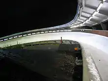 Completed in 1977, the track underwent a redesign of its start house area where the women's luge start house was moved from before turn four to near the men's luge start house prior to turn one in 2006.[1] This was done under the auspices of the International Bobsleigh and Tobogganing Federation (FIBT) and the International Luge Federation (FIL) and included a completely covered sled storage area,[1] new changing rooms, and facilities for coaches and officials.[2] The women's singles luge start house was integrated near the men's singles luge start house during the construction.[2] The track hosted the first two-woman bobsleigh world championships in 2000.[3]