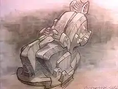 Several of the scenes from this episode take place on the alien spaceship in which Mulder is being imprisoned. When designing the interior look of the ship, production designer Cory Kaplan was attracted to primitive materials. In an interview, she noted, "We all see super-tech [in spaceships] now, but the idea of low-tech was much more interesting to me, much more visual. So, you take elements of rock and steel and chisel them into interesting shapes."[5] Her task was aided by the discovery of a backdrop from the film Alien (1979), which she and director of photography Bill Roe "lit ... very dimly and put it behind" the chair in which Mulder is restrained.[5] According to Kaplan, the chair "was just this rotating platform with this humongous dental piece that could rotate around as well and pull [Mulder's] face apart."[5] According to Makeup Supervisor Cheri Montasanto-Medcalf, Matthew Mungle helped in the creation of the alien torture machine by making prosthetic cheeks, which were pierced by hooks. These cheeks were applied to Duchovny, whom Montasanto-Medcalf notes "sat pretty good through all that."[5]