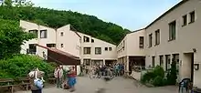 In the town itself, farming, somewhat limited by the steep slopes and the lean soils, always played a subordinate role. Now, however, even the outlying centre of Roßbach is purely residential, although some 90 ha of its cropland and meadowland is worked by the CJD. The last full-time farming operation within Wolfstein's limits is run by the family Sonn at the Reckweilerhof.[28]