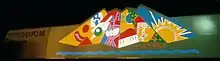 As well as the popular platypus mascot Expo Oz, designed by Disney's Imagineering Division, there were several themed initiatives that promoted World Expo 88, most notably the Expo's two interchangeable brands (as noted above): one an boomerang-styled '88' on a wire frame globe, and the colourful sunsails logo, which superimposed aspects of the Expo's entertainment on a relief of one of the Expo's popular sun sails (designed by Ken Cato, of Cato Purnell Partners). There was also a new weekly theme which allowed special-interest groups to entertain.[5]