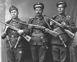 Counter-chetas – The Kontračeti were anti-partisan units organized and equipped by the Bulgarian police in the period between 1942 and 1944. Composed of former IMRO-activists, the first kontračeta was formed in Veles in the end of 1942 in order to limit partisan and Serbian Chetnik Movement activities in the region. The idea for the formation of these units came from Stefan Simeonov, chief of the Police in Skopje district, and vormer Internal Dobrujan Revolutionary Organisation četnik, and was approved by minister of the interior Petur Gabrovski.[41] Their peak strength was 200 units in August 1944.[55]