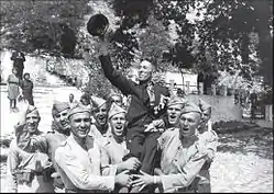 While the Sharlo's leadership was terminated, the vestiges of his policy among part of the local communist activists were preserved. After the arrest of Lazar Koliševski in November, the new executive body of the Macedonian Regional Committee continued to share Shatorov's pro-Bulgarian ideas and re-established close contact with the BCP.[64] Bane Andreev of Veles, a new party secretary for Macedonia, expressed this same ideology. He thought that the Macedonian people believe in Bulgaria's role as liberator and that no Macedonian wants to fight against the Bulgarian soldiers. That the Macedonians should respond positively to the mobilization call being carried out by the Bulgarian authorities and join the Bulgarian army.[65] Tito did not agree with that. During the spring of 1942 Andreev was arrested by Bulgarian police.[66] As a result, a factionalist struggle between the pro-Bulgarian and the pro-Yugoslav lines exacerbated. Thus Cvetko Uzunovski created a provisional regional committee that tried to take over the pro-Bulgarian faction, but without much success.[67] This policy changed since 1943 with the arrival of the Tito's envoy Montenegrin Serb Svetozar Vukmanović-Tempo.