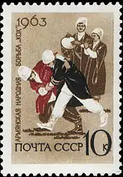 Kokh (Armenian: Կոխ) is the Armenian national wrestling,[5][6] known since the Early Middle Ages.[7] It's considered to be one of the oldest forms of wrestling.[5] It had influenced the Soviet martial sport Sambo.[8]