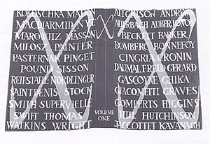 Dannie Abse, Craigie Aitchison, Michael Andrews, Frank Auerbach, Francis Bacon, George Barker, Samuel Beckett, David Bomberg, Yves Bonnefoy, Anthony Cronin, René Daumal, Lucian Freud, David Gascoyne, Ghika, Alberto Giacometti, Robert Graves, John Heath-Stubbs, Aidan Higgins, Geoffrey Hill, Philippe Jaccottet, Patrick Kavanagh, Oskar Kokoschka, Malcolm Lowry, Hugh MacDiarmid, Charles Marowitz, André Masson, John McGahern, O. V. de L. Milosz, Dom Moraes, Robert Nye, Boris Pasternak, Robert Pinget, Ezra Pound, Malcolm Quantrill, Michel Saint-Denis, Martin Seymour-Smith, C. H. Sisson, Stevie Smith, Jules Supervielle, Nathaniel Tarn, and Vernon Watkins.