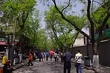 The Xi'an Muslim Quarter (Chinese: 西安回民街) is a very famous snack and commercial street in China. It is situated in the center part of Xi'an, China. It is close to the Bell Tower and the Drum Tower. Shehui Road is to the east, Zaoci Lane to the west, West Avenue to the south, and Hongfu Street to the north.[1] There are ten mosques in the area. The biggest one is the Great Mosque, which was listed as the state-level protected heritage for its traditional buildings and religious significance.[2] According to demographic statistics in 2010, about 60,000 people live in this area, more than half of which are the Huis and the others are the majority Hans.[3] In the past few decades, Xi'an Muslim Quarter has become a well-known tourism site which is famous for its culture and food. It attracts visitors from all over the world each year.