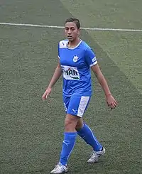 Debuting in the match against FC NSA Sofia on August 8, 2013, she appeared in seven matches of the 2013–14 UEFA Women's Champions League, at which her team advanced to the Round of 16.[4]