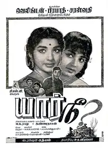 Yaar Nee? (transl. Who are you?) is a 1966 Indian Tamil-language psychological thriller film, directed by Sathyam and produced by P. S. Veerappa. The film stars Jaishankar and Jayalalithaa. It is a remake of the Hindi film Woh Kaun Thi? (1964).[1] The film became successful at the box office.[2]