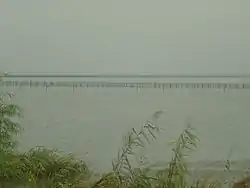 Yangcheng Lake (Chinese: 阳澄湖; pinyin: Yángchéng Hú) is a freshwater lake about 3 km (1.9 mi) northeast of the city of Suzhou in Jiangsu Province, and ranges in depth from 1.5–2 m (4 ft 11 in–6 ft 7 in).[1] The lake is 17-kilometer (11 mi)-long from north to south, with an average width of 8 kilometers (5.0 mi) from east to west. It is the most famous area of origin for the Chinese mitten crab, which is considered a delicacy.