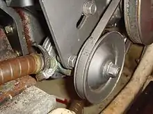 The seawater pump is rotated by a short belt linked to the crankshaft.