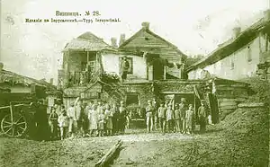 In 1942, a large part of the quarter was destroyed by German occupation troops. One infamous photo, The Last Jew of Vinnytsia, shows a member of Einsatzgruppe D about to execute a Jewish man kneeling before a mass grave.[1] The text The Last Jew of Vinnytsia was written on the back of the photograph, which was found in a photo album belonging to a German soldier. It was captured by the Red Army on 20 March 1944.